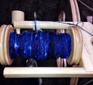 I use my spinning wheel with the quill attachment to wind my yarn onto weaving bobbins.