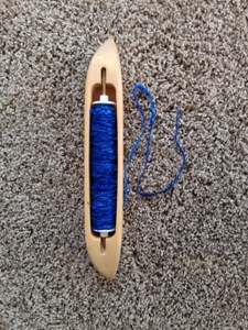 Here’s the yarn on a bobbin inside a weaving shuttle ready to for the loom.