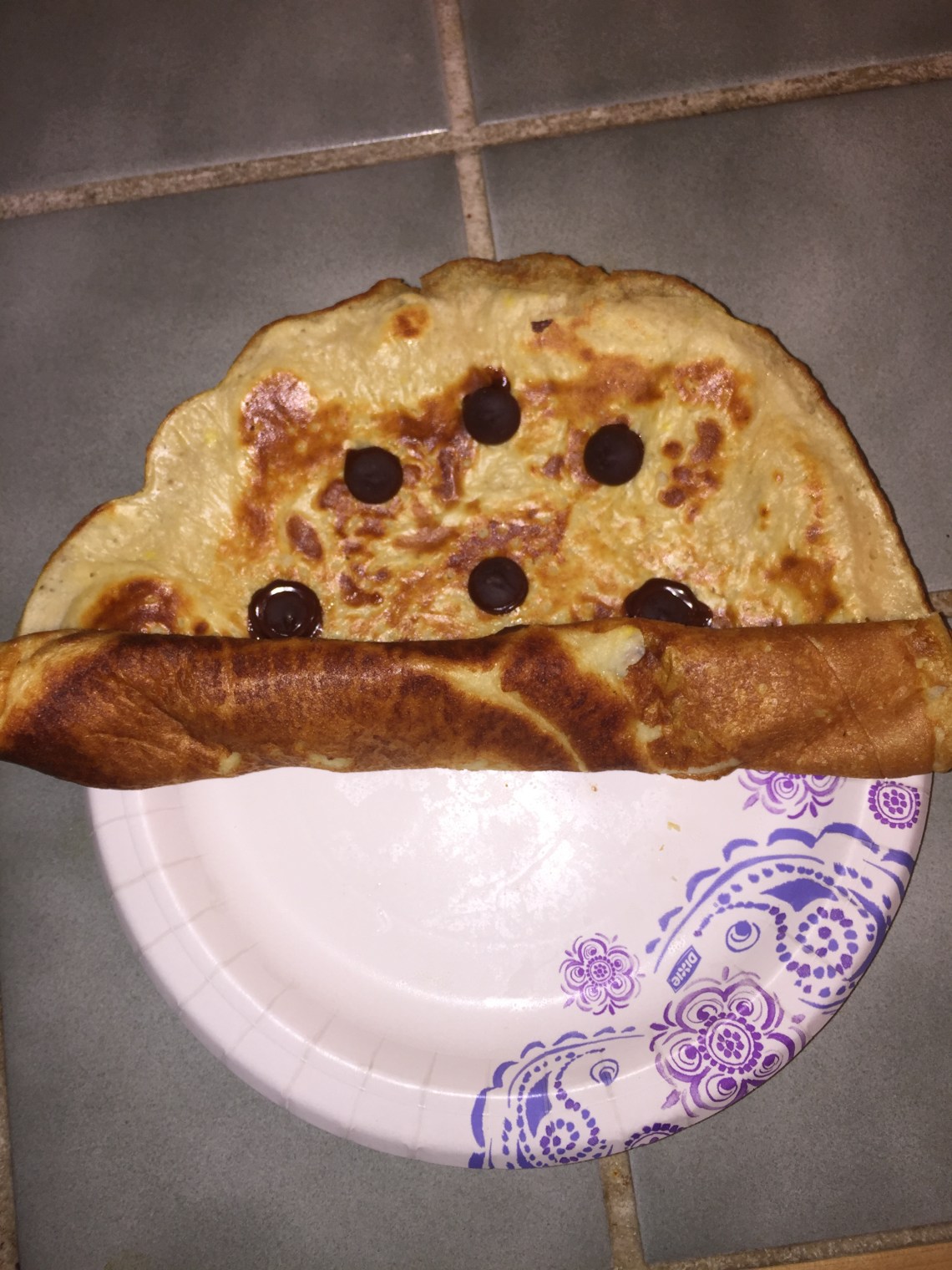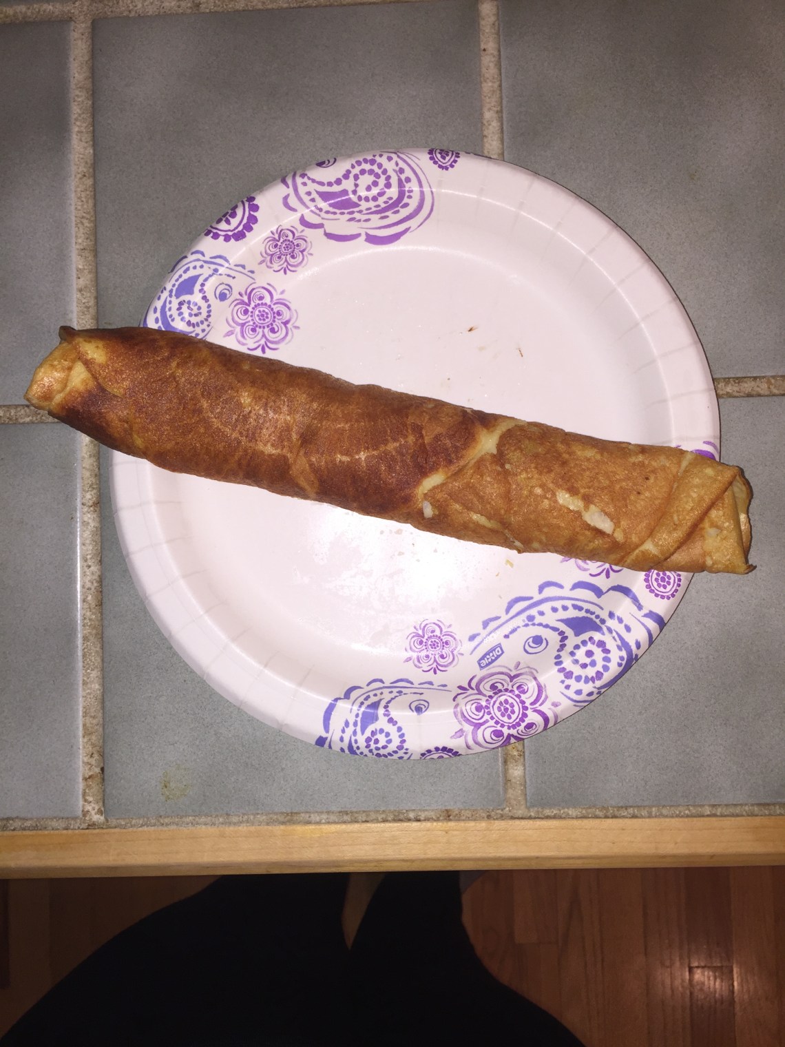 As the pancake cools, it becomes thinner and more like a crepe. Roll it up while it is still warm.